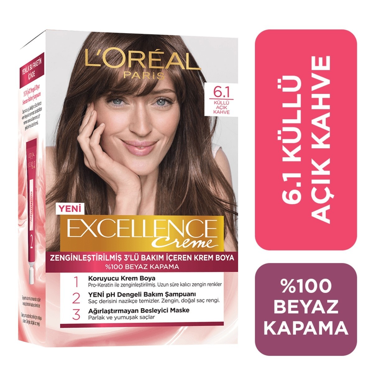L'Oreal Paris Excellence Creme Küllü Açık Kahve Saç Boyası 6.1